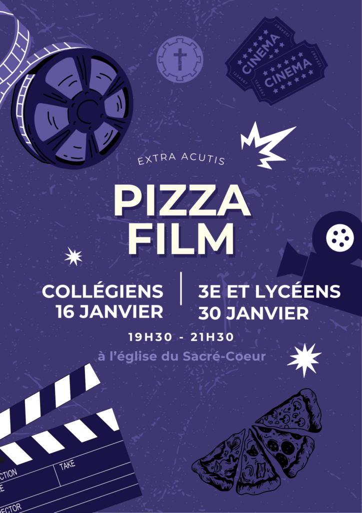 Envie de vous détendre après une dure semaine au collège ou au lycée ? Venez partager une soirée Acutis un peu particulière autour d’une pizza et d’un bon film. Chauffage et ambiance fraternelle assurée, pop–corn et film de qualité !