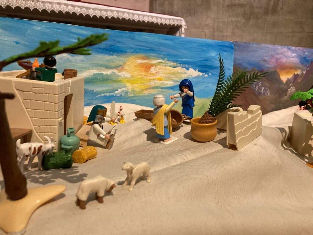 En ces jours-là, Marie se mit en route et se rendit avec empressement vers la région montagneuse, dans une ville de Judée. Elle entra dans la maison de Zacharie et salua Élisabeth. Or, quand Élisabeth entendit la salutation de Marie, l’enfant tressaillit en elle. Alors, Élisabeth fut remplie d’Esprit Saint, et s’écria d’une voix forte : « Tu es bénie entre toutes les femmes, et le fruit de tes entrailles est béni. D’où m’est-il donné que la mère de mon Seigneur vienne jusqu’à moi ? Car, lorsque tes paroles de salutation sont parvenues à mes oreilles, l’enfant a tressailli d’allégresse en moi. Heureuse celle qui a cru à l’accomplissement des paroles qui lui furent dites de la part du Seigneur. » Marie dit alors : « Mon âme exalte le Seigneur, exulte mon esprit en Dieu, mon Sauveur ! Il s’est penché sur son humble servante ; désormais tous les âges me diront bienheureuse. Le Puissant fit pour moi des merveilles ; Saint est son nom ! Sa miséricorde s’étend d’âge en âge sur ceux qui le craignent. Déployant la force de son bras, il disperse les superbes. Il renverse les puissants de leurs trônes, il élève les humbles. Il comble de biens les affamés, renvoie les riches les mains vides. Il relève Israël son serviteur, il se souvient de son amour, de la promesse faite à nos pères, en faveur d’Abraham et sa descendance à jamais. » Marie resta avec Élisabeth environ trois mois, puis elle s’en retourna chez elle.