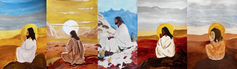 Aperçu des dernières productions de l’atelier St Joseph de peinture, sur le thème « Jésus au désert »