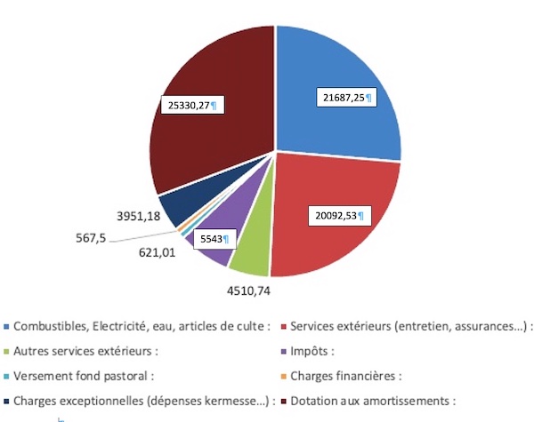 Les Conseils de Fabrique des 2 paroisses chargés de veiller à l’entretien des églises, du presbytère, du foyer du Sacré Cœur, du logement des prêtres et du fonctionnement du secrétariat font appel, comme chaque fin d’année, à votre générosité. A cette fin nous souhaitons vous rendre compte de nos frais de fonctionnement dont vous pouvez prendre connaissance ci-dessous :